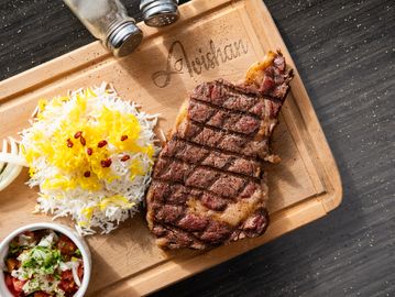 Grilled T-Bone served with rice & salad